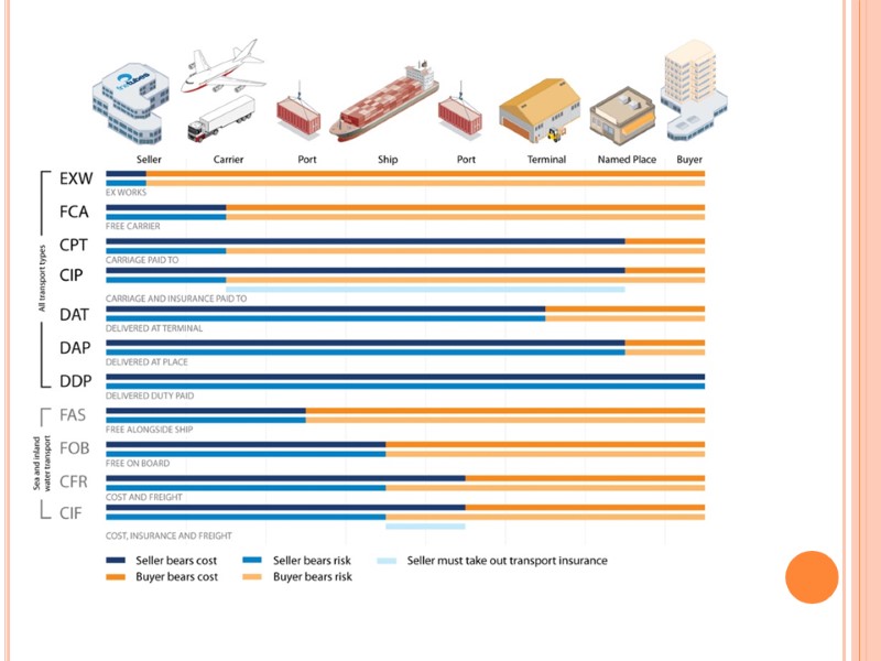 International sales transactions between sellers and buyers require an agreement on : the form of payment, payment conditions, transport conditions.