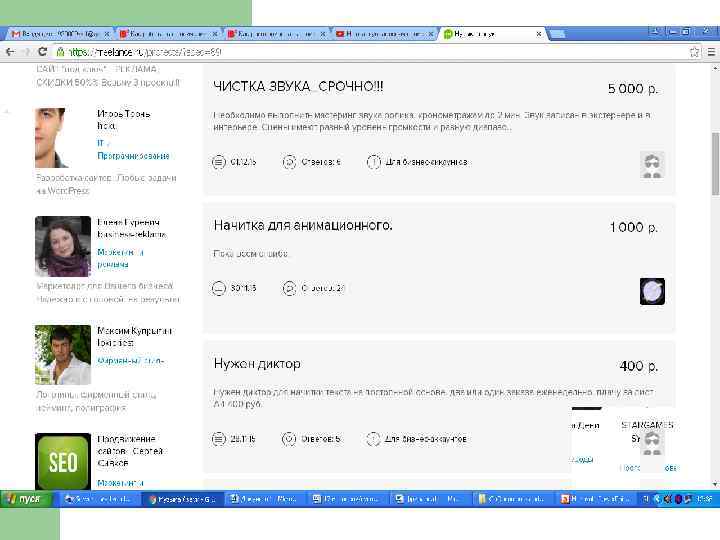 Freelance 1. 2. 3. 4. 5. https: //www. fl. ru/ https: //freelance. ru/ Weblancer. net Moguza. ru Freelancer. com