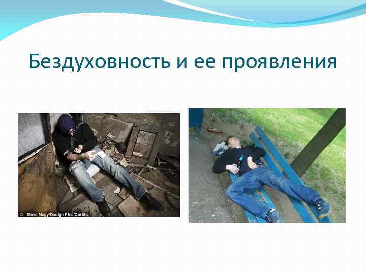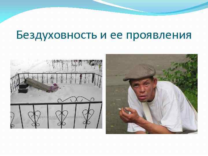 Проявления бездуховности Алкоголизм, наркомания Геймерство, интернетомания Деструктивное, безответственное поведение Вандализм, нигилизм Примитивизм (мещанство, потребительство)