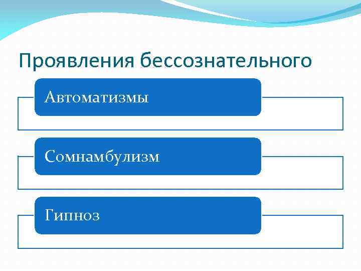 Проявления бессознательного Автоматизмы Сомнамбулизм Гипноз