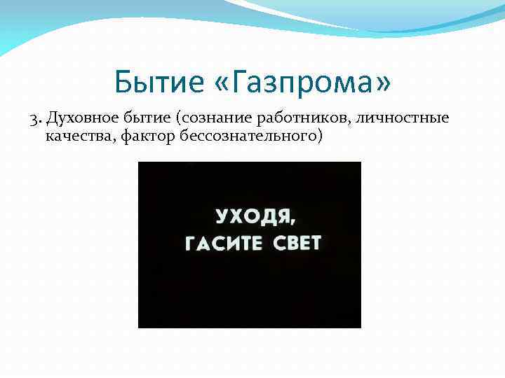 Бытие «Газпрома» 3. Духовное бытие (сознание работников, личностные качества, фактор бессознательного)