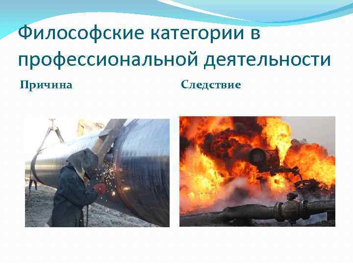 Основные философские категории Категории Определение Примеры Хаос Беспорядок Смута в России, 17 век Причина Явление, вызывающее другое явление Хозяйственный кризис – причина Смуты Следствие Результат причины Ослабл. внешнепол. позиций России Случайное Возможное Трагедия в Углличе Необходимость Обязательное Народные ополчения Действительность Реально существующее Политический режим В. Путина Возможность Может возникнуть Делигитимация режима