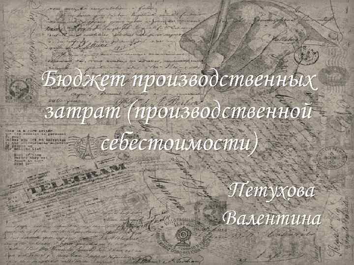 Бюджет производственных затрат (производственной себестоимости) Петухова Валентина