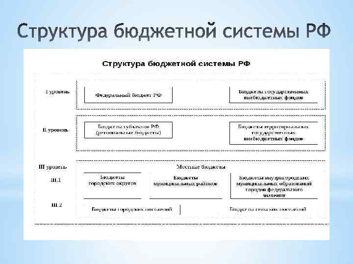 *Бюджетная система РФ - совокупность бюджетов всех уровней и государственных внебюджетных фондов, основанная на экономических отношениях и государственном устройстве РФ, регулируемая нормами права.