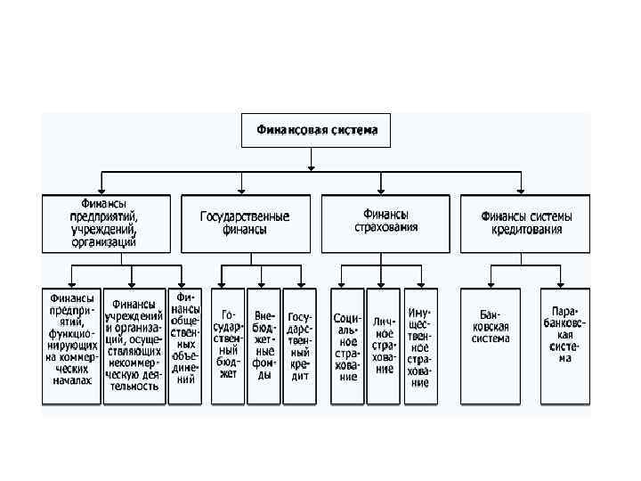 Финансовая система • Финансовая система – совокупность экономических отношений по поводу • БНП (фискальная, финансовая политика)- совокупность мер, в которых используются элементы финансовой системы. формирования и использования денежных средств. • Функции финансов. ( амер. экономист Р. Масгрейв). 1. Аллокация. Предоставление населению общественных благ. 2. Перераспределение через бюджет национального дохода с целью достижение справедливого распределения доходов. 3. Стабилизация. Достижение полной занятости, стабильности цен, экономического роста. • В России функции финансов: -распределительная -контролирующая -стимулирующая -фискальная