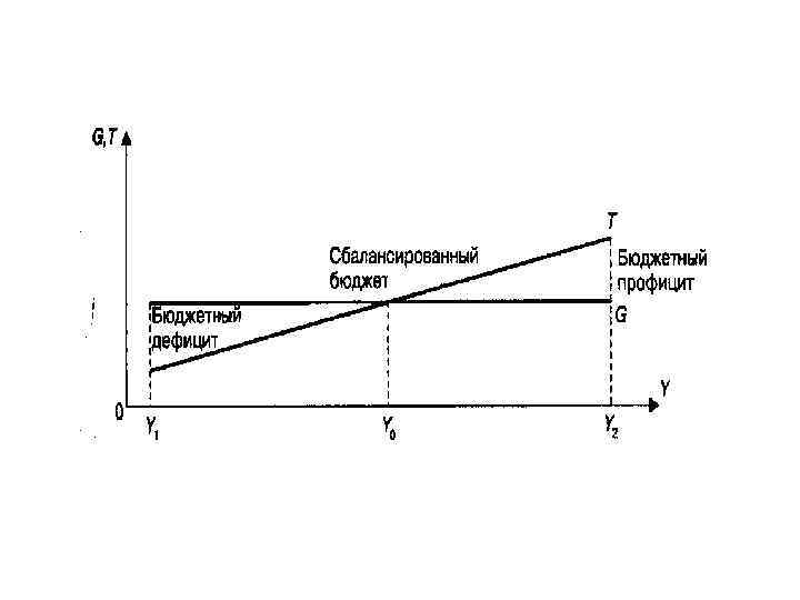 Концепции сбалансированного бюджета 1. Ежегодно балансируемый бюджет. Считалась общепризнанной до Великой депрессии. 2. Бюджет, балансируемый на циклической основе. Бюджет балансируется в ходе экономического цикла. В период спада создается дефицит. В период подъема – профицит, который идет на покрытие гос. долга. 3. Функциональные финансы. Идея сбалансированности экономики, а не бюджета. Кенсианство. Главная цель финансов -это обеспечение неинфляционной полной занятости, а сбалансированность бюджета является второстепенной проблемой. Мультипликатор сбалансированного бюджета Если G и T растут на одну и ту же величину, это соответствует такому же приросту национального дохода. M сб. б. = ∆Y / ∆G = ∆Т M сб. б. ≤ 1 Теорема Т. Хаавельмо (Норвегия, Нобелевская премия 1989 г. ): Если увеличение гос. расходов финансируется за счет соответствующего роста налогов, то мультипликтативный эффект равен единице и увеличение дохода равно увеличению гос. расходов или налогов. ∆Y=∆ G = ∆ T