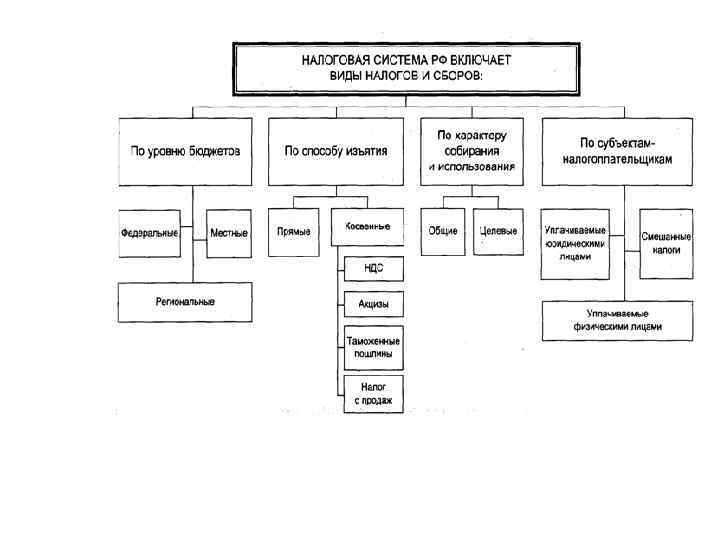 Налоги – обязательные взносы в бюджет и внебюджетный фонды. Налоговый Кодекс РФ принят в 1998 году. «Система налогов и общие принципы налогообложения и сборов в РФ» . Налоговая система: Объекты налога Субъекты налога Источник налога Единица налогообложения Ставка налога Налоговая льгота Налоговый оклад (сумма налога с одного объекта) Принципы налогообложения. Налоговые ставки: регрессивные, прогрессивные, пропорциональные