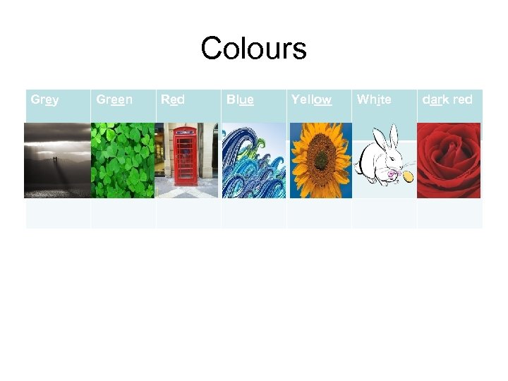 Colours Grey Green Red Blue Yellow White dark red