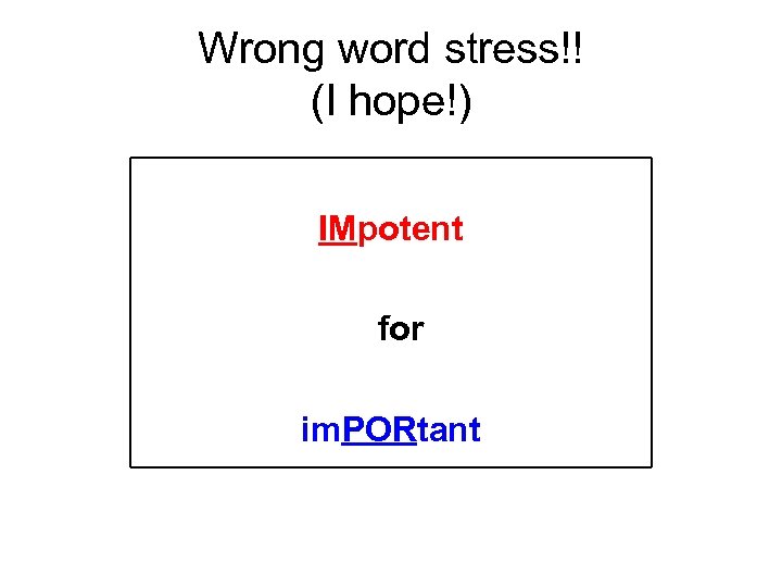 Wrong word stress!! (I hope!) IMpotent for im. PORtant