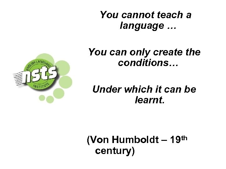 You cannot teach a language … You can only create the conditions… Under which it can be learnt. (Von Humboldt – 19 th century)