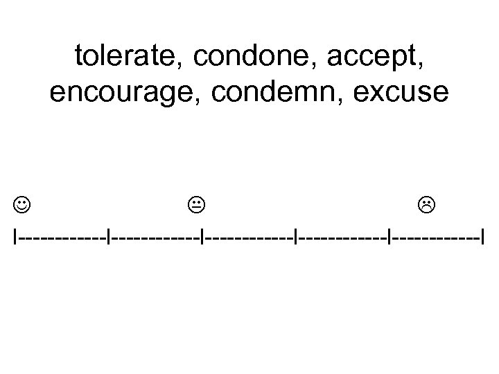 tolerate, condone, accept, encourage, condemn, excuse l------------l------------l------l