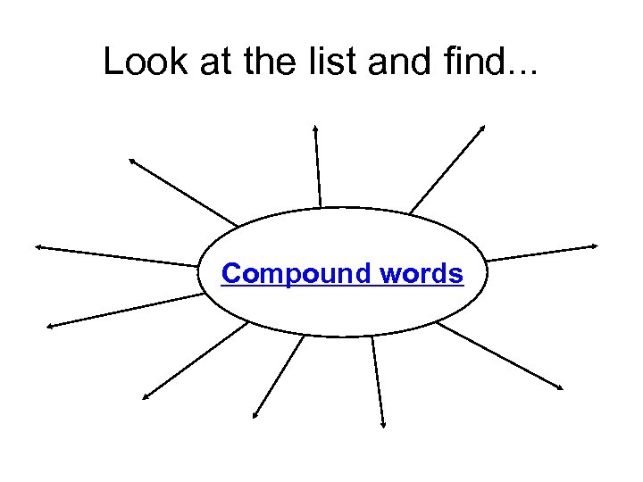 Look at the list and find. . . Compound words