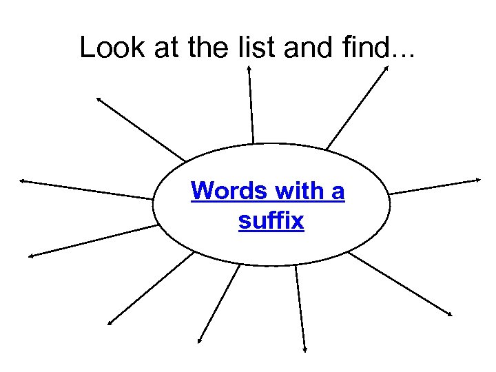 Look at the list and find. . . Words with a suffix