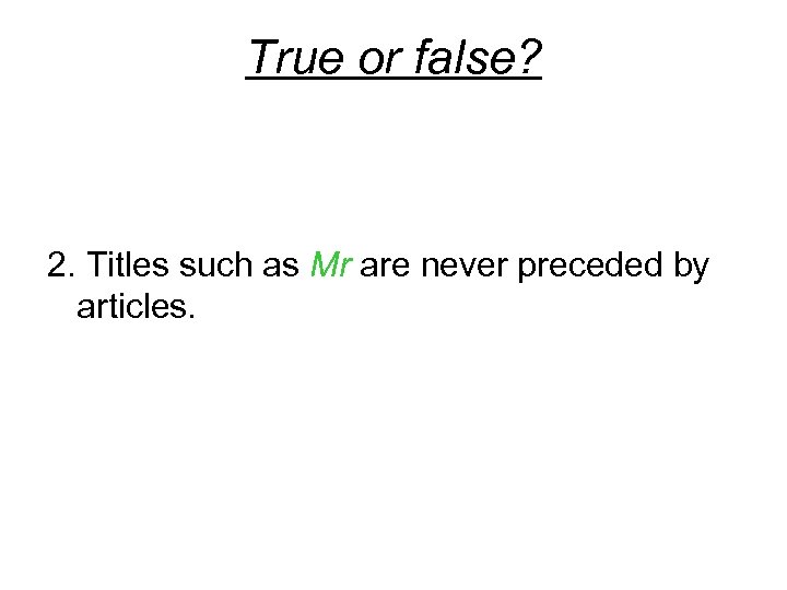 True or false? 2. Titles such as Mr are never preceded by articles.