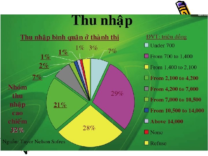 Số liệu về Internet tại VN v 50% dân số tại các Tp lớn sử dụng Internet. ØDành 212 phút online mỗi tuần, Ø 70% dân số tại 6 TP lớn sử dụng điện thoại để nghe nhạc và nhắn tin. Ø 60% người sử dụng Internet có sở hữu blog, 77% đọc blog của ngưởi khác, 72% có tham gia vào các mạng xã hội, 82% lên mạng bắt đầu với động tác tìm kiếm thông tin…