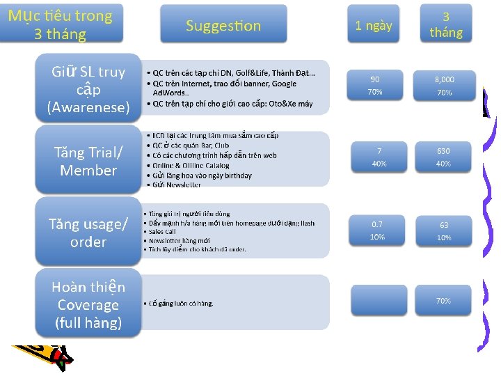 Mục đích • • • Tạo độ nhận biết tốt. Tăng sự tin cậy vào sản phẩm. Cải thiện hình ảnh doanh nghiệp. Lancer sản phẩm mới. Khẩu hiệu :