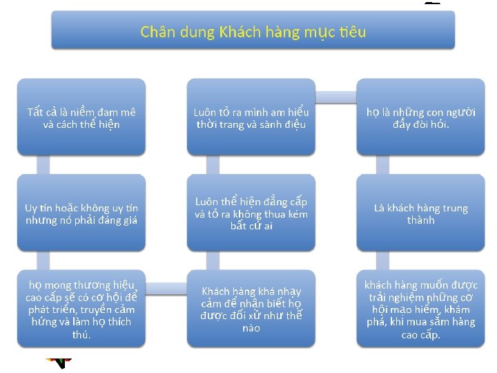 Câu hỏi khách hàng thường đặt ra 1. 2. 3. 4. 5. 6. 7. 8. Có thể hiện niềm đam mê? Có uy tín? Sản phẩm có đáng giá? Là hàng thật? Có truyền cảm hứng và sự thích thú cho KH? Có thật sự am hiểu thời trang và sành điệu? Có đẳng cấp và không thua bất cứ ai? Đối xử với khách hàng như thế nào? Đòi hỏi bản thân mình như thế nào? Có tạo những cơ hội mạo hiểm và sự khám phá cho khách hàng khi mua sắm?
