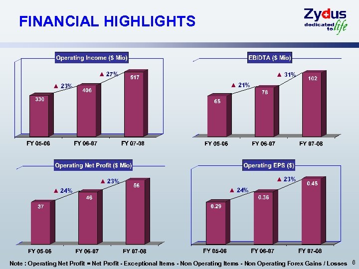 FINANCIAL HIGHLIGHTS ▲ 27% ▲ 31% ▲ 23% ▲ 24% Note : Operating Net Profit = Net Profit - Exceptional Items - Non Operating Forex Gains / Losses 6
