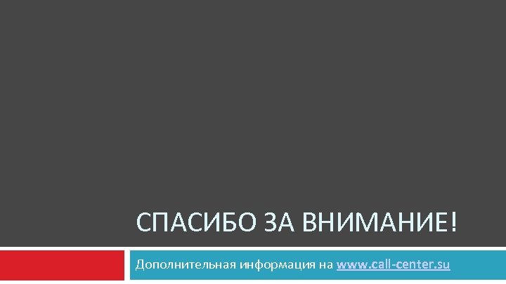 СПАСИБО ЗА ВНИМАНИЕ! Дополнительная информация на www. call-center. su