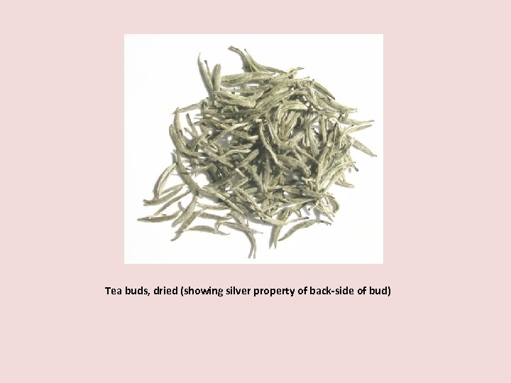 Tea buds, dried (showing silver property of back-side of bud)