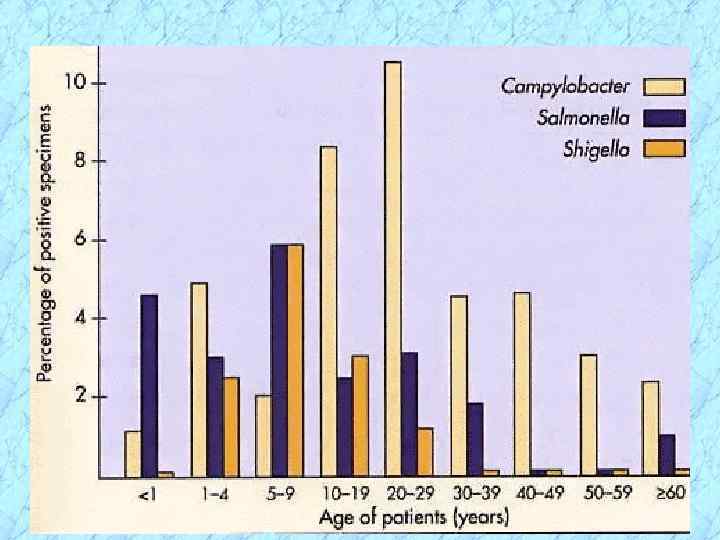 Epidemiology of Campylobacteriosis(cont. ) Ø Contaminated poultry accounts for more than half of the camylobacteriosis cases in developed countries but different epidemiological picture in developing countries Ø In U. S. and developed countries: Peak incidence in children below one year of age and young adults (15 -24 years old) Ø In developing countries where campylobacters are hyperendemic: Symptomatic disease occurs in young children and persistent, asymptomatic carriage in adults