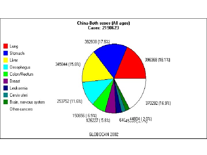 CHINA: Survey of cancer registries nationwide Information from 48 PBCRs They cover 5. 7% population Qiqihaer Haerbin of China Wuwai Tianjin Boli Ningan Shenyang Anshan Chicheng Beijing Jiamusi Dalian Ganyu Zanghuang Jiaxian Yangcheng Huaian Shexian Linqu Cixian Feicheng Linzhou Jianhu Taixing Luoyang Jintan Lueyang Yanting Jiaxing Wuhan To be published in Eur. J. Cancer Prevn. Shanghai Jiashan Haining Hangzhou Changle Gejiu Tin Mine Fusui Guangzhou (1, 2) Shenzhen Sihui Hong Kong Zhongshan Dafeng Yangzhong Haian Haimen Qidong Shanghai