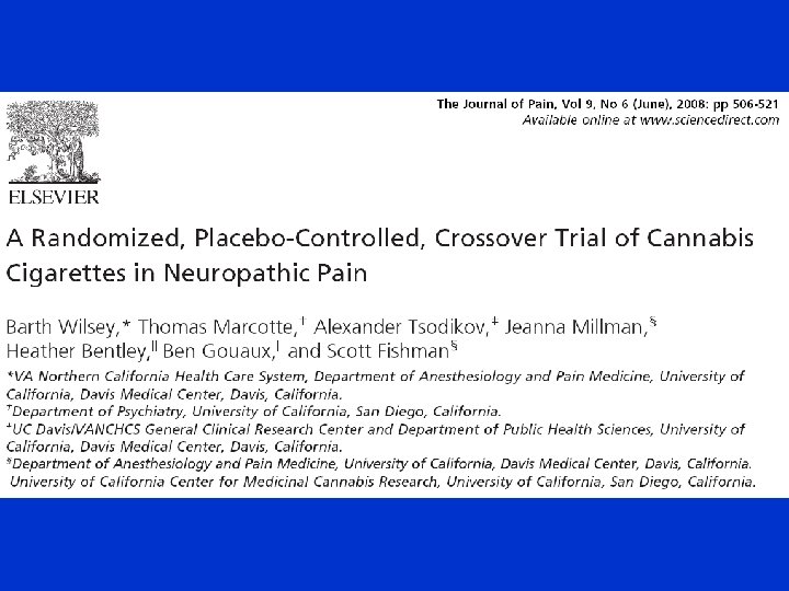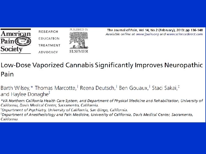 Cannabis and the Treatment of Neuropathic Pain Barth Wilsey MD VANCHCS Pain Clinic Department of Physical Medicine and Rehabilitation UC Davis Medical Center