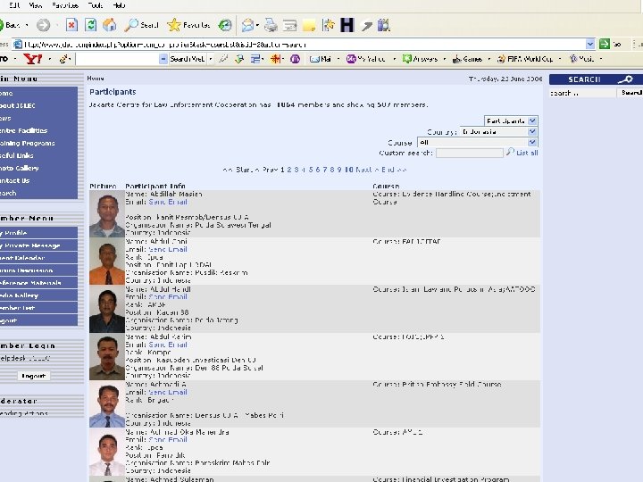 JCLEC Alumini Website - Secure • My Profile • Event calendar • Forum Discussion • Reference Materials • Media Gallery • Member List • 1064 Alumni members including 106 trainers