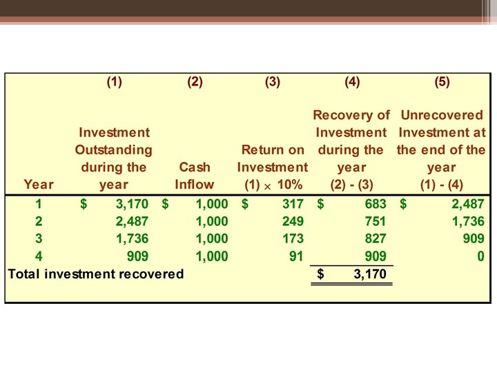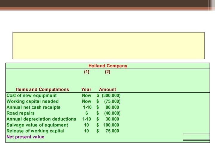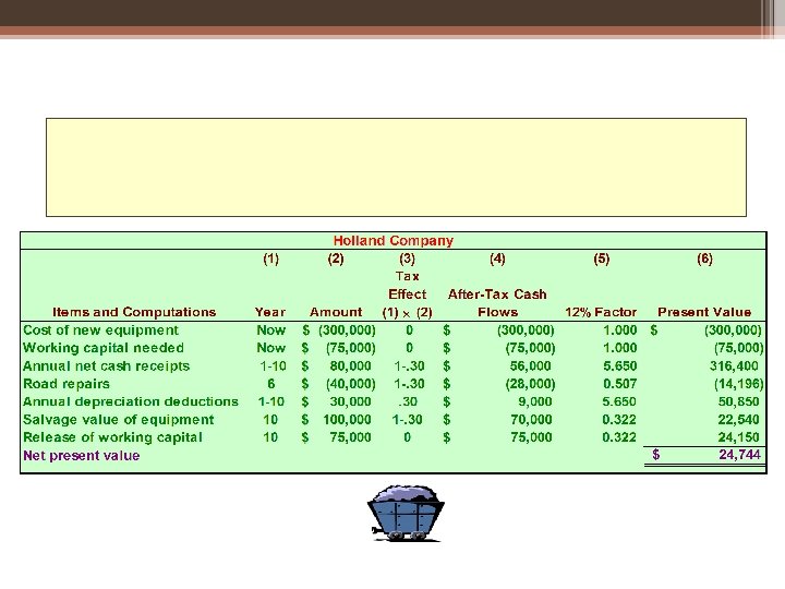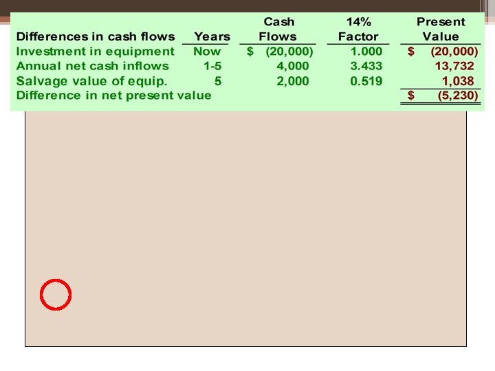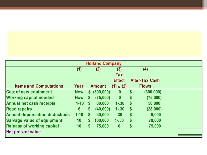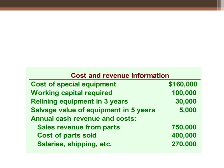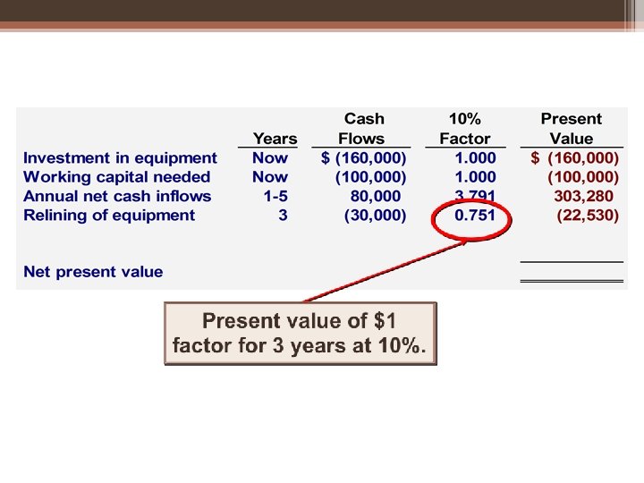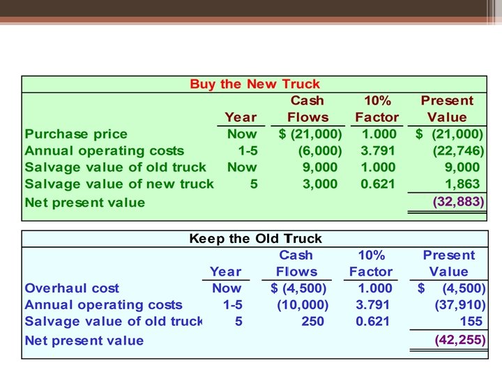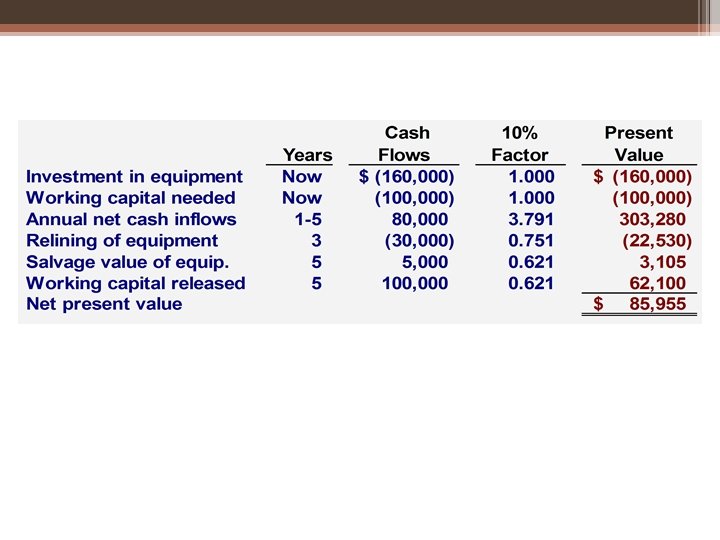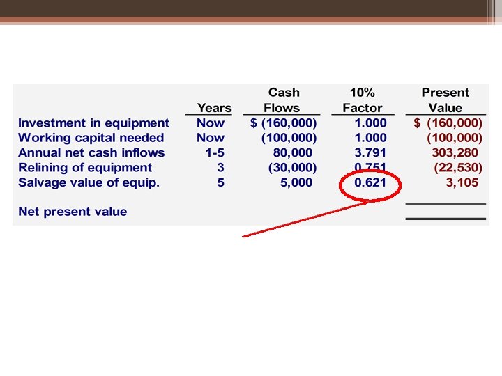 This equation can be used to determine that if the salvage value of the supertanker is at least $10, 000, the net present value of the investment would be positive and therefore acceptable.