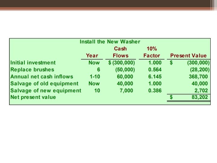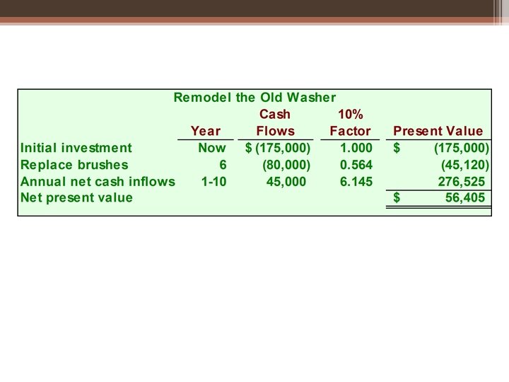 If White remodels the existing washer. . . Let’s look at the present value of this second alternative.