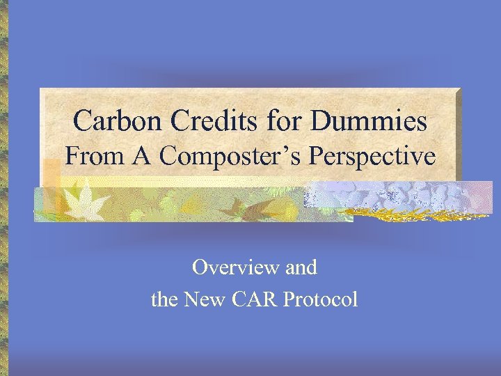 Carbon Credits for Dummies From A Composter’s Perspective Overview and the New CAR Protocol