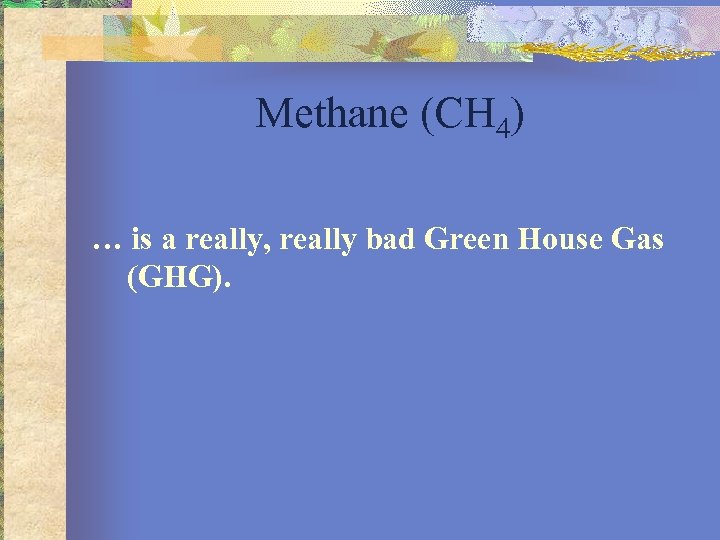 Methane (CH 4) … is a really, really bad Green House Gas (GHG).