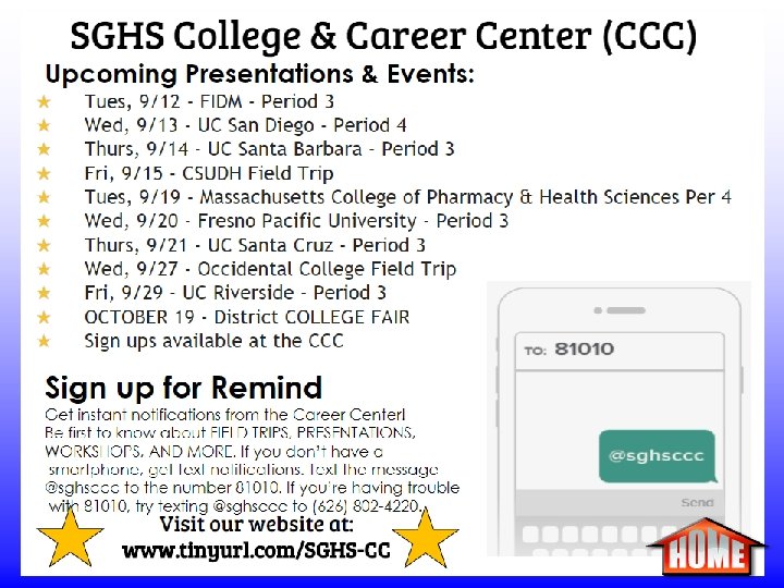 Last thoughts… • California mandates that all high schools upload GPAs for all enrolled seniors by October 1 st. Students who want to opt-out must do so no later than January 1 st of junior year. Don’t forget to sign up for Class of 2019 REMIND!