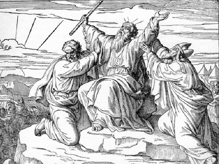 Así sus brazos se mantuvieron firmes hasta la puesta del sol. De esa manera, Josué derrotó a Amalec y a sus tropas al filo de la espada.