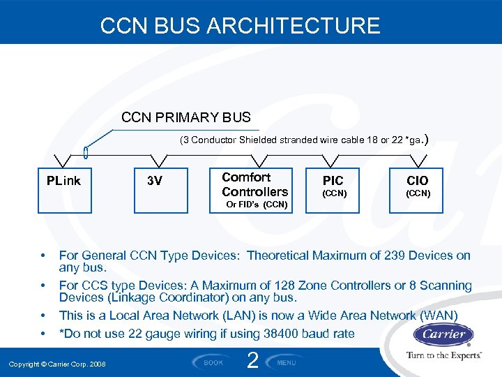 CARRIER COMFORT NETWORK BUS ARCHITECTURE Copyright © Carrier Corp. 2008 1