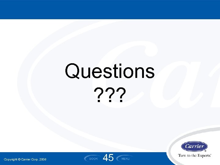 Questions ? ? ? Copyright © Carrier Corp. 2008 45