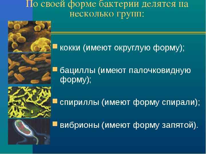 Бактерии группа одноклеточных организмов, отличающихся разнообразием форм