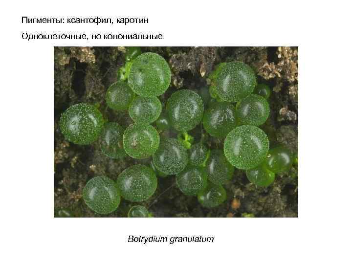Пигменты: ксантофил, каротин Одноклеточные, но колониальные Botrydium granulatum
