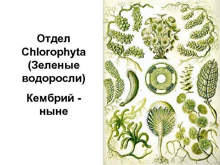 Отдел Chlorophyta (Зеленые водоросли) Кембрий ныне