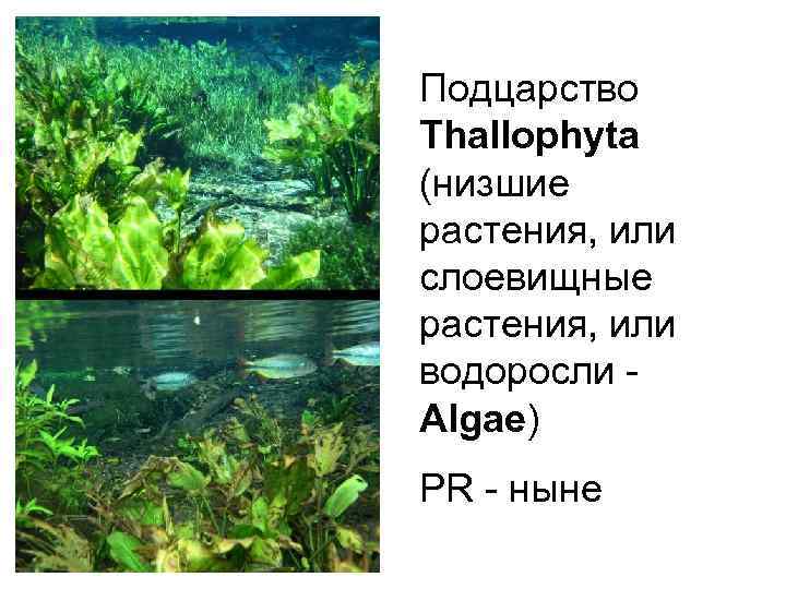 Подцарство Thallophyta (низшие растения, или слоевищные растения, или водоросли - Algae) PR - ныне