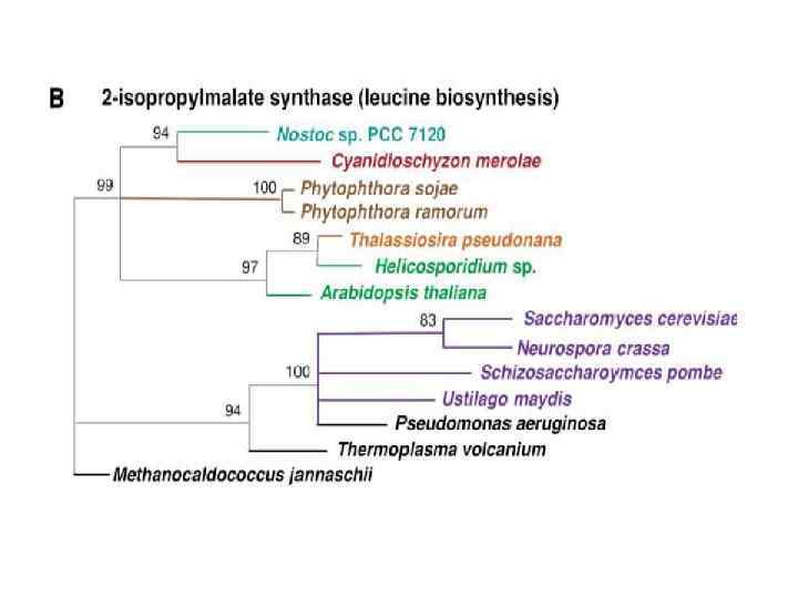 Таким образом, фитофторный геном (а, возможно, и геном возбудителей ложных мучнистых рос) мозаичный, включающий гены, полученные от красных водорослей, анцестральных бесцветных гетероконт и фитопатогенных аскомицетов.