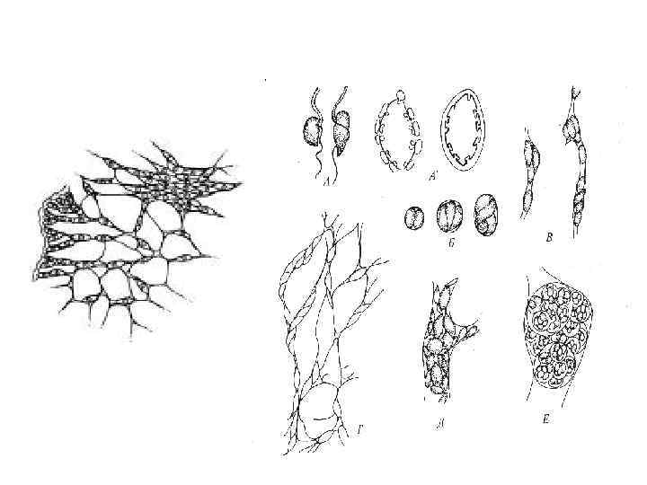 Класс LABYRINTHULOMYCOTA (сетчатые слизевики) 1. Вегетативное тело – сетчатый плазмодий – система разветвленных слизистых трубок внутри которых двигаются отдельные клетки 2. На поверхности клеток находятся органеллы – ботросомы, выделяющие эктоплазматическую сеть трубок 3. Не способны к синтезу лизина 4. Размножение гетероконтными зооспорами 5. Запасной углевод – альфа-глюкан гликоген 6. Водные, в основном, морские обитатели