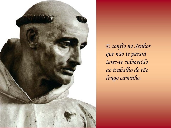 E confio no Senhor que não te pesará teres-te submetido ao trabalho de tão longo caminho.