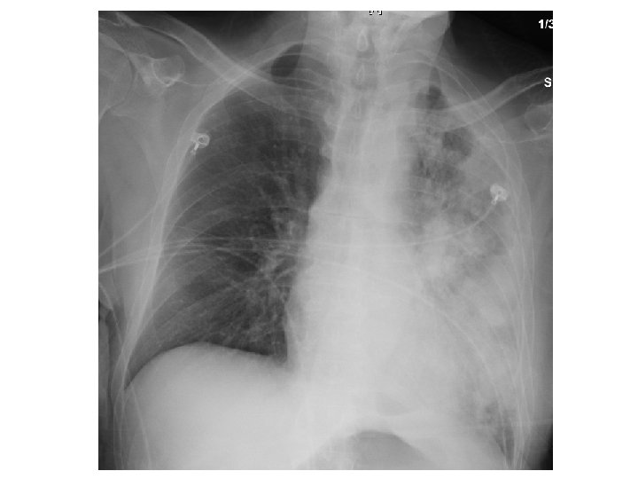 A few hours post-bronchoscopy… • • Tachypneic with RR 30 s Tachycardic to HR 150 s Hypoxic w/ SPO 2 92 on 4 L NC Accessory muscle use. Crackles, most prominent over left upper lung field. Decreased breath sounds, more prominent on left side • ABG 7. 5 / 22 / 65 / 20 / 93, lact 3. 4 • Transferred to MICU for new sepsis secondary to HCAP ; Rx vancomycin and cefepime