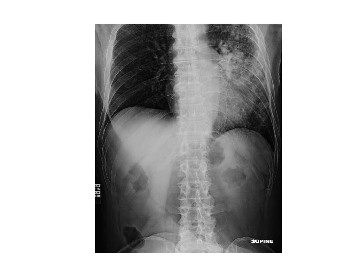 Physical exam • HR 117 • Vital signs including RR and O 2 Sat. were normal range (12 -18/ 96 -100%) • Respiratory: Positive egophony on left lung. • Gastrointestinal: Diffusely tender to palpation without rebound/ guarding, no masses