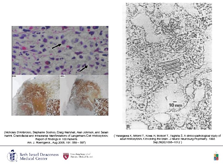 (Nicholas D'Ambrosio, Stephanie Soohoo, Craig Warshall, Alan Johnson, and Sasan Karimi. Craniofacial and Intracranial Manifestations of Langerhans Cell Histiocytosis: Report of Findings in 100 Patients Am. J. Roentgenol. , Aug 2008; 191: 589 – 597) (`Hasegawa K, Mitomi T, Kowa H, Motoori T, Yagisita S. A clinico-pathological study of adult histiocytosis X involving the brain. J Neurol Neurosurg Psychiatry. 1993 Sep; 56(9): 1008– 1012 )