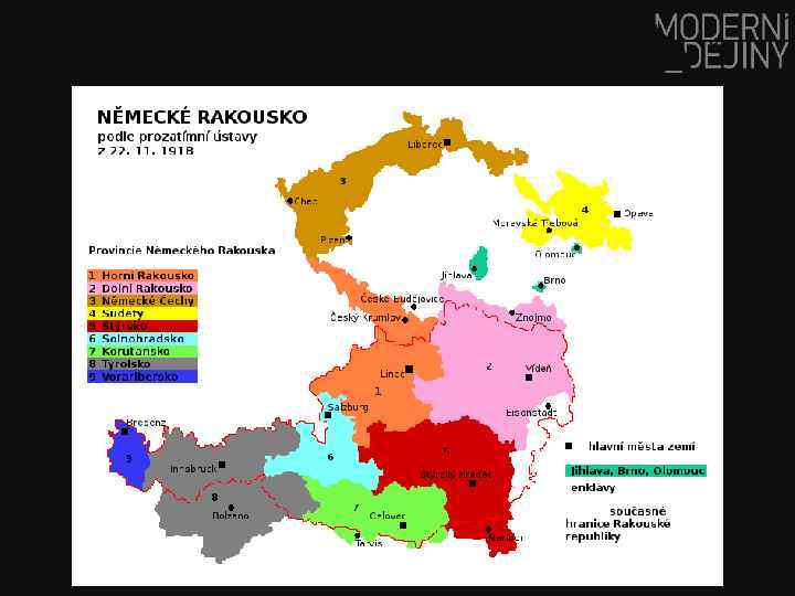 Vznik Československé republiky (1918) = nová situace § Němci – z privilegovaného etnika národnostní menšinou § Češi – dovršení národní emancipace