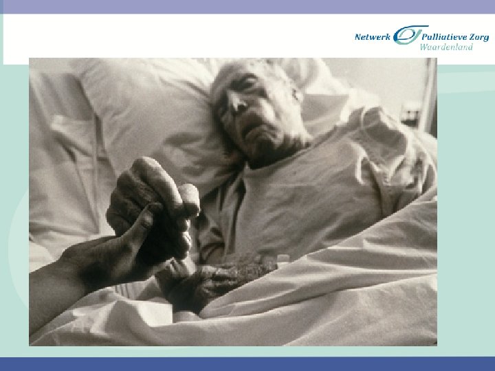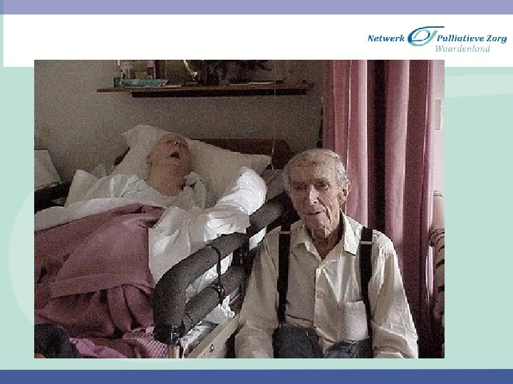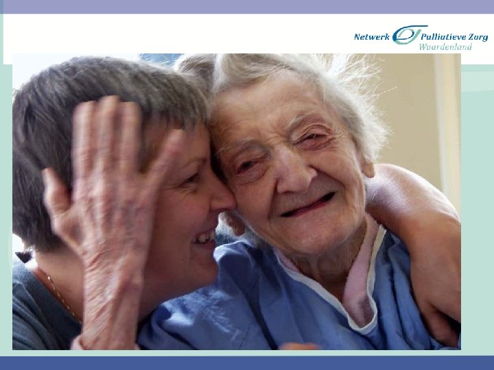 Wat is anders bij dementie? • • • Steeds meer mensen met dementie Palliatieve zorg is niet alleen maar zorg in de laatste fase Geen genezing, wél kwaliteit van leven Ondersteuner van de mantelzorger Behoefte aan speciale vorm van palliatieve zorg Bundeling van krachten en expertise verhoogt de kwaliteit van zorg