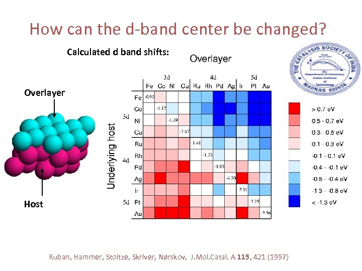 How can the d-band center be changed? Calculated d band shifts: Overlayer Host Ruban, Hammer, Stoltze, Skriver, Nørskov, J. Mol. Catal. A 115, 421 (1997)