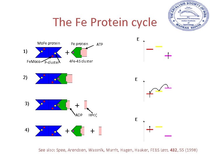 The Fe Protein cycle Mo. Fe protein ATP E 1) Fe. Moco P-cluster 4 Fe-4 S cluster 2) E 3) ADP E 4) See also: Spee, Arendsen, Wassnik, Marrit, Hagen, Haaker, FEBS Lett. 432, 55 (1998)